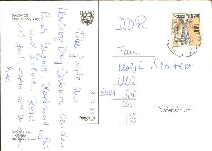 old postcard Dalovice Hotel Ohre postalisch gelaufen