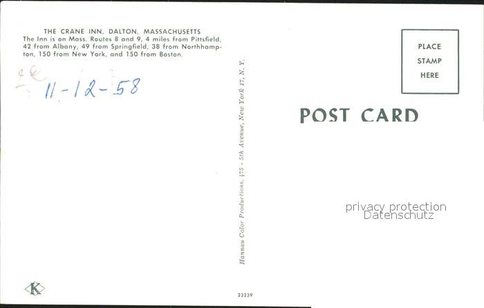 71967523 Dalton Massachusetts Crane Inn postalisch nicht gelaufen Erhaltung siehe scans KatCode: 14140230000000