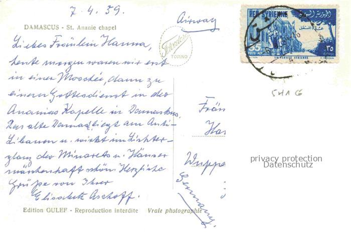 74153464 old postcard Damas Damaskus Syria Chapelle Sainte Ananie postalisch gelaufen Erhaltung siehe scans [FriedD77] KatCode: 13170