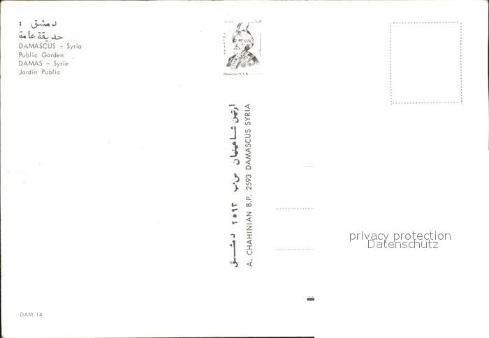 Damas Damaskus Syria Public Garden postalisch nicht gelaufen Erhaltung siehe scans