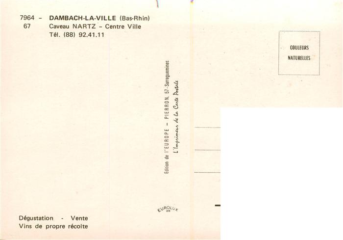 13897881 Dambach-la-Ville 67 Bas-Rhin Caveau Nartz Centre Ville postalisch nicht gelaufen Erhaltung siehe scans [WerneD78] Wern Katcode 11170067567084