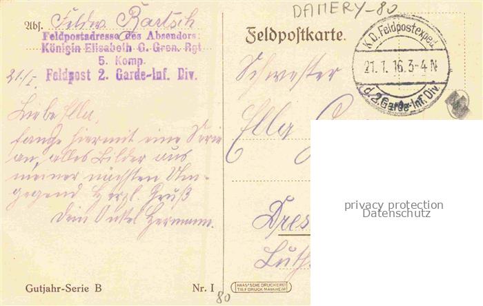 14109158 Damery Montdidier 80 Somme Hauptstrasse Schloss Kirche in Fresnoy in Truemmern Kuenstlerkarte postalisch gelaufen Feldpostexpedition (Stempel) Erhaltung siehe scans [FriedD77] Feldpostexpedition (Stempel) alte Postkarte Frie Katcode 11170080380232