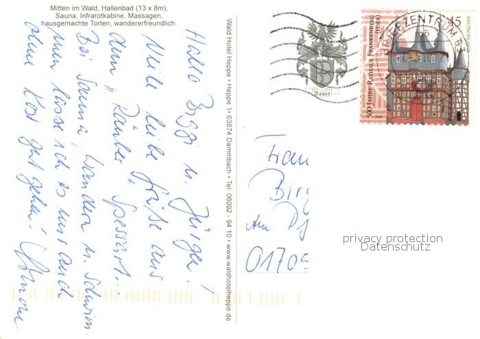 73779752 alte Postkarte Dammbach Wald Hotel Heppe Fliegeraufnahme postalisch gelaufen Erhaltung siehe scans [WerneD78] KatCode: 11110009671160
