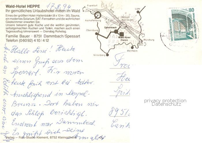73866424 alte Postkarte Dammbach Waldhotel Heppe postalisch gelaufen Fliegeraufnahme Erhaltung siehe scans [FriedD77] KatCode: 11110009671160