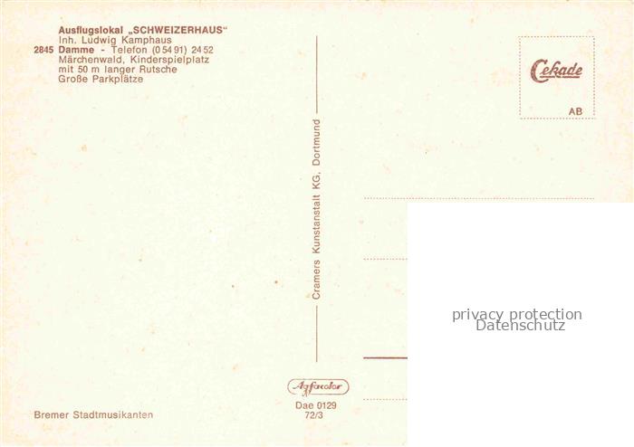 74152233 Damme Duemmer Vechta Niedersachsen Ausflugslokal Schweizerhaus Maerchenstube postalisch nicht gelaufen Erhaltung siehe scans [WerneD78] KatCode: 11110003460002