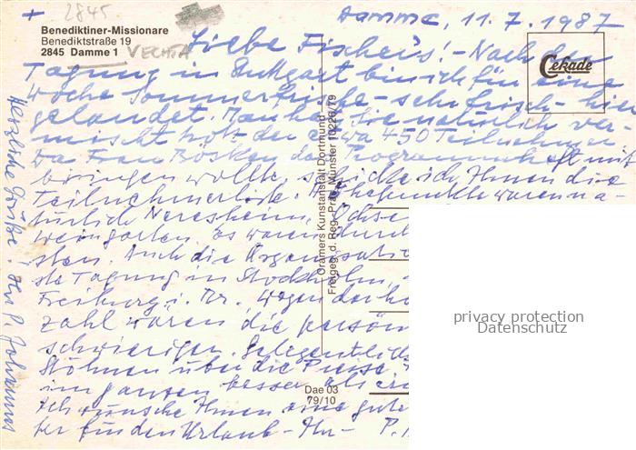74042652 Damme Duemmer Vechta Niedersachsen Benediktiner Missionare postalisch nicht gelaufen Fliegeraufnahme Erhaltung siehe scans [FriedD77] KatCode: 11110003460002