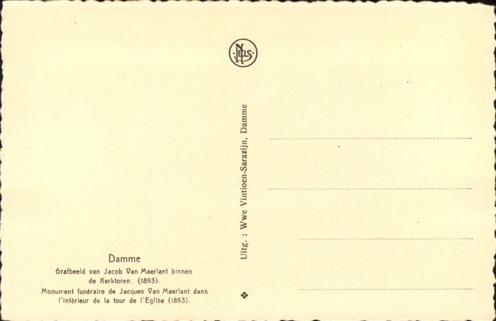 71059171 Damme West-Vlaanderen Grabeeld Jacob Van Maerlant postalisch nicht gelaufen KatCode: 11070031000113
