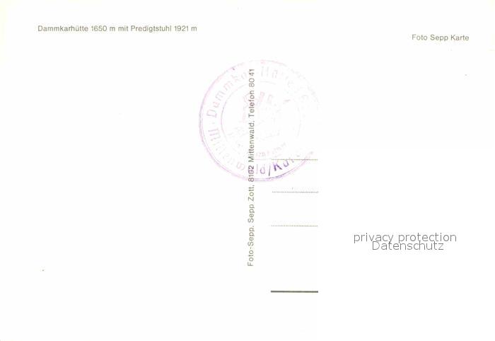 72837368 Dammkarhuette Predigtstuhl postalisch nicht gelaufen Erhaltung siehe scans [NatalD47] KatCode: 11110009180123