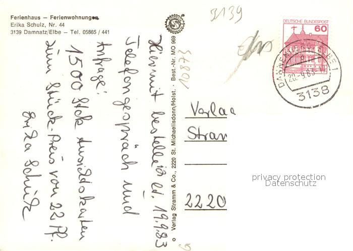 73673372 alte Postkarte Damnatz Ferienhaeuser Landwirtschaftliche Anwesen Biospaerenreservat Elbtalaue postalisch gelaufen Erhaltung siehe scans [FriedD77] KatCode: 11110003354003