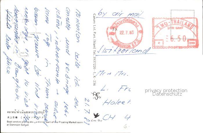 alte Postkarte Damnoen Saduak Floating Market postalisch gelaufen Erhaltung siehe scans