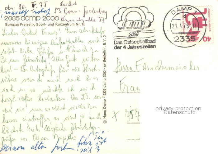 73629401 alte Postkarte Damp 2000 Europas Freizeit- Sport- und Kurzentrum Nr. 1 Fliegeraufnahme postalisch gelaufen Erhaltung siehe scans [FriedD77] KatCode: 11110001058040