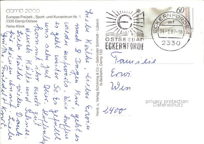 72092717 alte Postkarte Damp Europas Freizeit Sport Kurzentrum Reha Klinik postalisch gelaufen Erhaltung siehe scans KatCode: 11110001058040