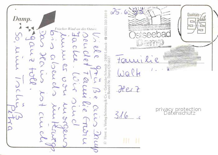 72761054 alte Postkarte Damp Fliegeraufnahme mit Hafn postalisch gelaufen Erhaltung siehe scans [LiesaD40] KatCode: 11110001058040