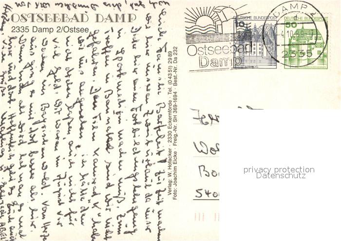 73725859 alte Postkarte Damp Ostseebad Fliegeraufnahme Panorama Strand postalisch gelaufen Erhaltung siehe scans [LiesaD40] KatCode: 11110001058040