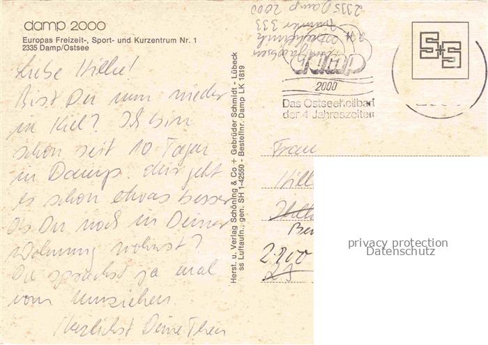 74095962 alte Postkarte Damp Ostseebad Halbinsel Schwansen Schleswig-Holstein Freizeit Sport und Kurzentrum Fliegeraufnahme postalisch gelaufen Erhaltung siehe scans [WerneD78] KatCode: 11110001058040