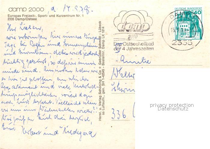 72959842 alte Postkarte Damp Sport und Kurzentrum Fliegeraufnahme postalisch gelaufen Erhaltung siehe scans [WerneD78] KatCode: 11110001058040