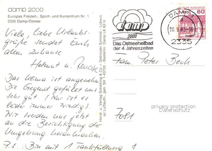 73010294 alte Postkarte Damp Sport und Kurzentrum Fliegeraufnahme postalisch gelaufen Erhaltung siehe scans [WerneD78] KatCode: 11110001058040