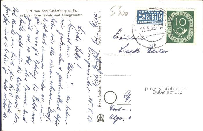 alte Postkarte Dampfer Binnenschifffahrt Bad Godesberg Drachenfels Koenigswinter postalisch gelaufen Erhaltung siehe scans
