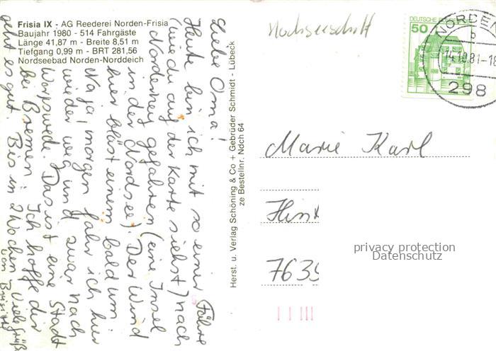74051918 alte Postkarte Dampfer Binnenschifffahrt Frisia IX AG Reederei Norden Frisia postalisch gelaufen Erhaltung siehe scans [IrynaD87] KatCode: 22480000000100