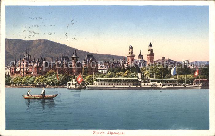 alte Postkarte Dampfer Binnenschifffahrt Helvetia Zuerich Alpenquai postalisch gelaufen