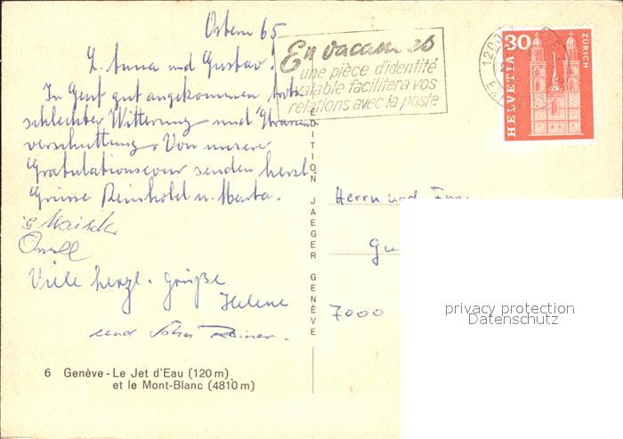 alte Postkarte Dampfer Binnenschifffahrt Lausanne Geneve Jet d Eau Mont-Blanc postalisch gelaufen