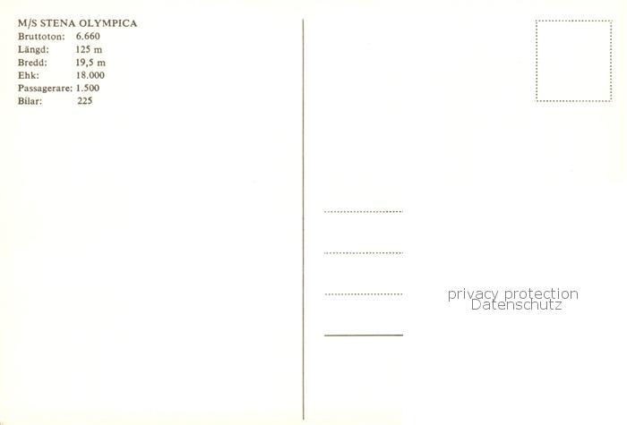 73900506 Dampfer Binnenschifffahrt MS Stena Olympica postalisch nicht gelaufen Erhaltung siehe scans [IrynaD87] KatCode: 22480000000100
