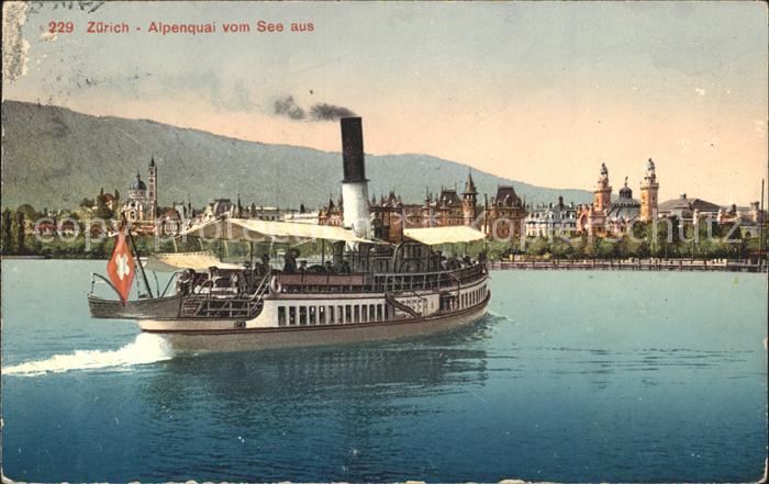 alte Postkarte Dampfer Binnenschifffahrt Zuerich Alpenquai postalisch gelaufen Erhaltung siehe scans