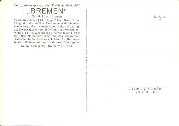 12151048 Dampfer Oceanliner Bremen KatCode 22480000000700