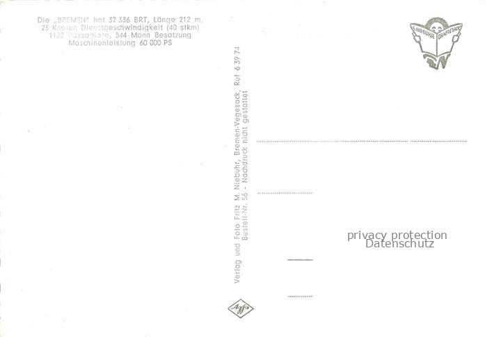 74051375 Dampfer Oceanliner Bremen Moewen postalisch nicht gelaufen Erhaltung siehe scans [SanaeD93] KatCode: 22480000000700