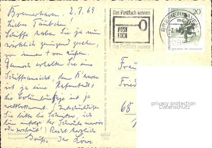 alte Postkarte Dampfer Oceanliner Columbuskaje Bremerhaven postalisch gelaufen Erhaltung siehe scans