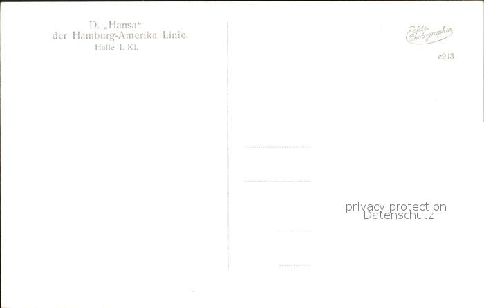 12355596 Dampfer Oceanliner D. Hansa Hamburg-Amerika-Linie Halle 1. Klasse KatCode 22480000000700