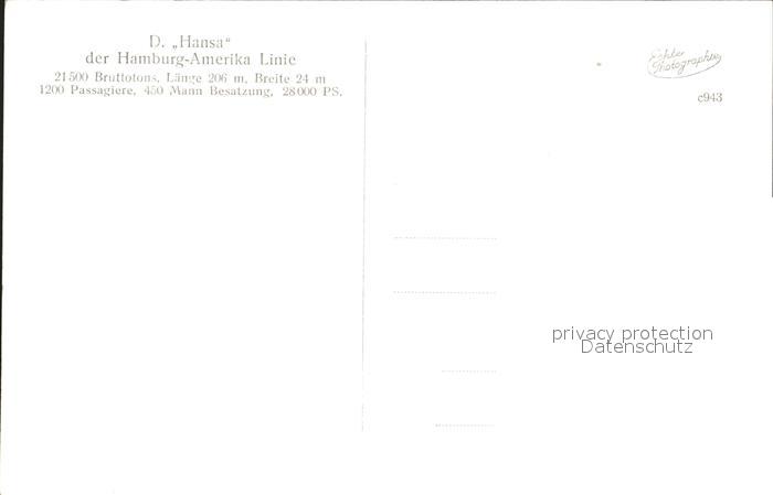 Dampfer Oceanliner D. Hansa Hamburg-Amerika-Linie postalisch nicht gelaufen Erhaltung siehe scans