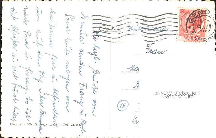 alte Postkarte Dampfer Oceanliner Genova Stazione Marittima postalisch gelaufen Erhaltung siehe scans