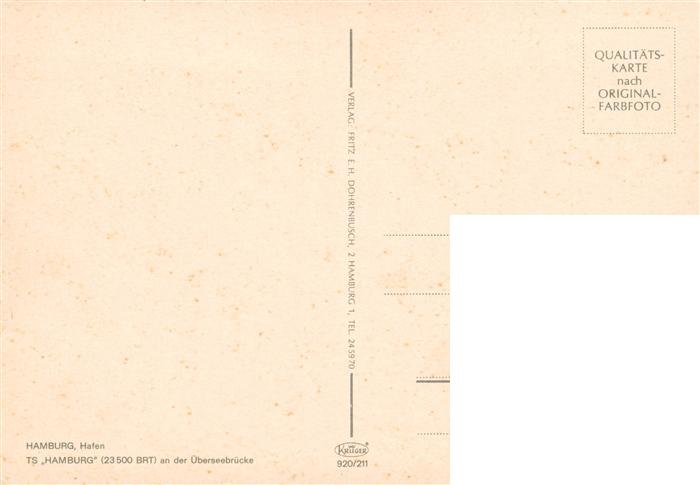 73930519 Dampfer Oceanliner Hamburg Hafen TS HAMBURG postalisch nicht gelaufen Erhaltung siehe scans [IrynaD87] KatCode: 22480000000700