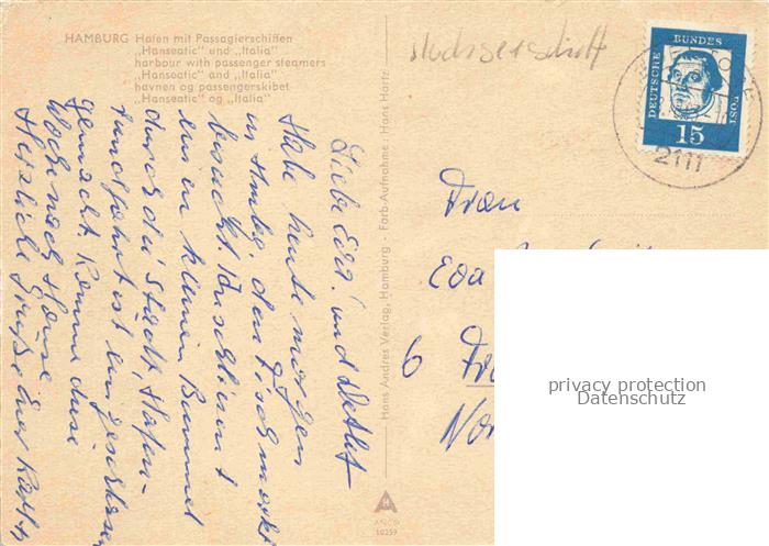74052038 alte Postkarte Dampfer Oceanliner Hamburg Hanseatic postalisch gelaufen Erhaltung siehe scans [IrynaD87] KatCode: 22480000000700