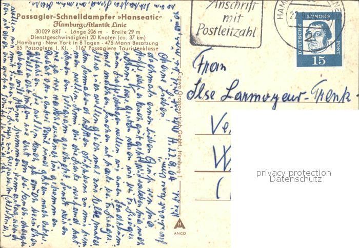 alte Postkarte Dampfer Oceanliner Hanseatic Hamburg postalisch gelaufen Erhaltung siehe scans