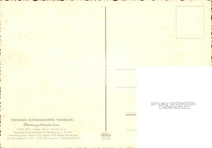 Dampfer Oceanliner Hanseatic Hamburg postalisch nicht gelaufen