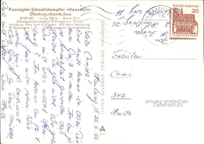 72294216 Dampfer Oceanliner Hanseatic Hamburg KatCode 22480000000700