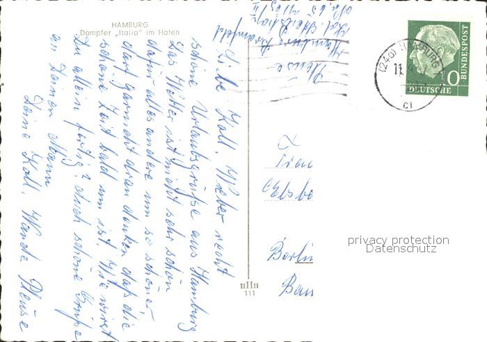 alte Postkarte Dampfer Oceanliner Italia Hamburg Hafen postalisch gelaufen Erhaltung siehe scans