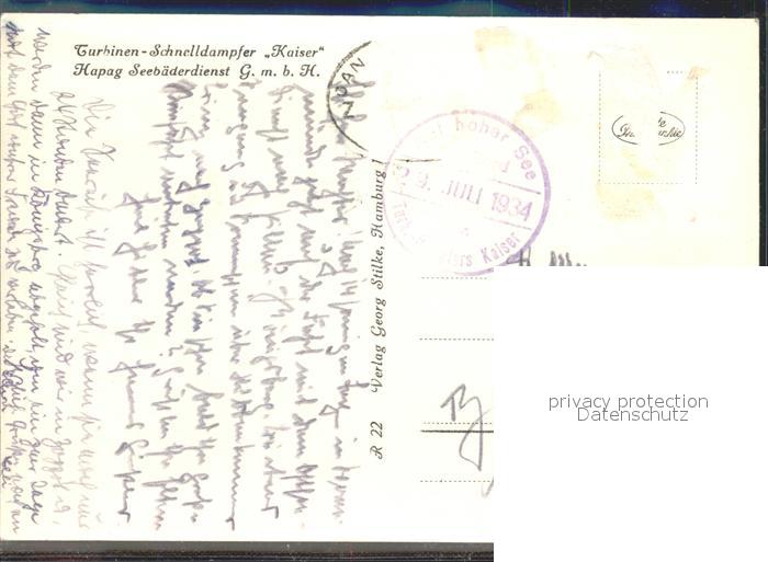 alte Postkarte Dampfer Oceanliner Kaiser Hapag-Seebaederdienst postalisch gelaufen Erhaltung siehe scans