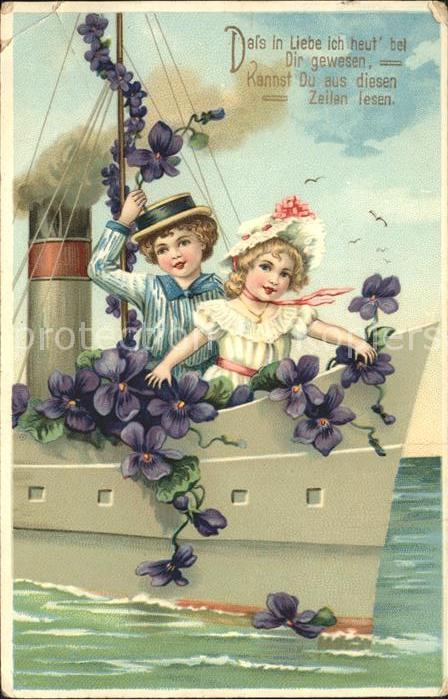 11789502 Dampfer Oceanliner Kinder Hutmode Veilchen Gedicht Litho KatCode 22480000000700