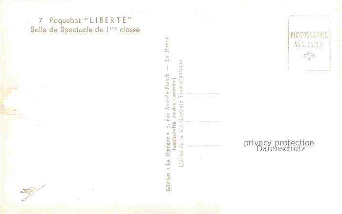 74084560 Dampfer Oceanliner LIBERTE Sallon de Spectacle de 1 Classe postalisch nicht gelaufen Erhaltung siehe scans [IrynaD87] KatCode: 22480000000700