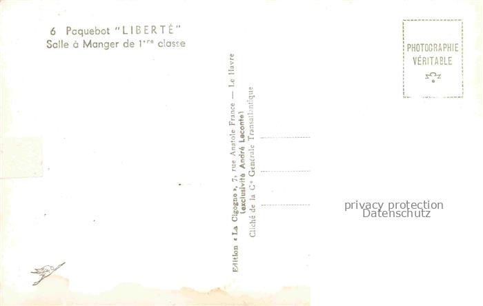 74084562 Dampfer Oceanliner LIBERTE Sallon Manger de 1 Classe postalisch nicht gelaufen Erhaltung siehe scans [IrynaD87] KatCode: 22480000000700