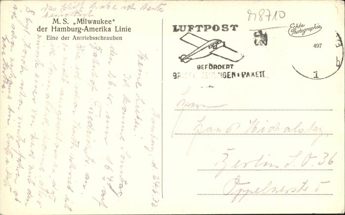 41414251 Dampfer Oceanliner M.S. Milwaukee Antriebsschrauben KatCode 22480000000700