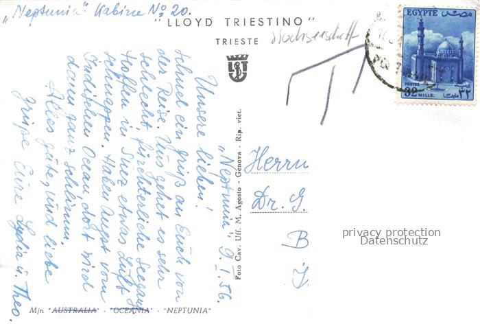 74051669 alte Postkarte Dampfer Oceanliner MN Australia Oceania Neptunia Lloyd Tristino postalisch gelaufen Erhaltung siehe scans [IrynaD87] KatCode: 22480000000700
