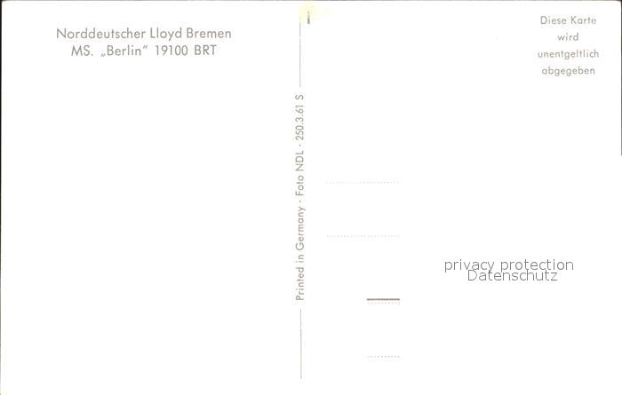 Dampfer Oceanliner MS Berlin postalisch nicht gelaufen Erhaltung siehe scans