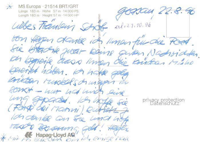 alte Postkarte Dampfer Oceanliner MS Europa 21514 BRT/GRT postalisch gelaufen Erhaltung siehe scans [IrynaD87]