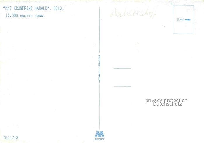 74051974 Dampfer Oceanliner MS Kronprins Harald Oslo postalisch nicht gelaufen Erhaltung siehe scans [IrynaD87] KatCode: 22480000000700