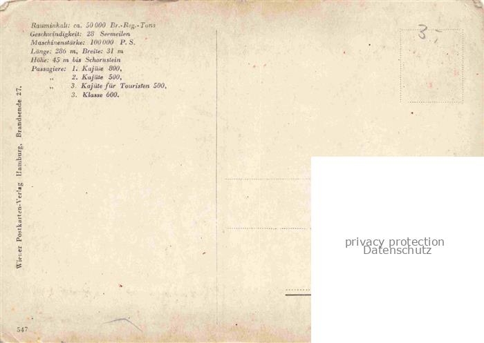74106146 Dampfer Oceanliner Norddeutsche Lloyd Turbinen Schnelldampfer BREMEN postalisch nicht gelaufen Erhaltung siehe scans [IrynaD87] KatCode: 22480000000700