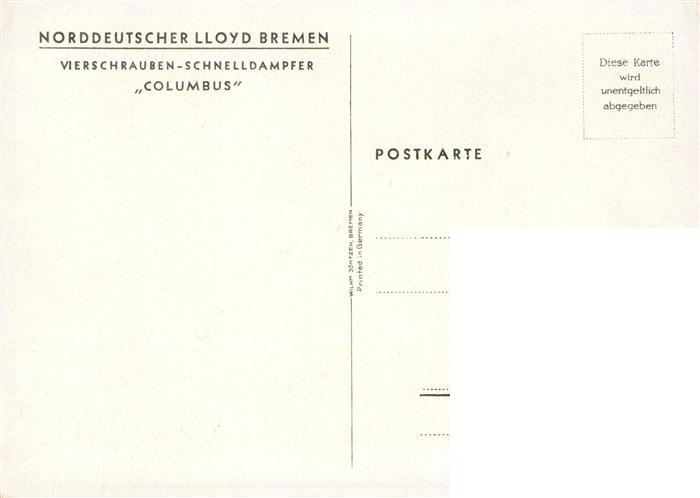 73894434 Dampfer Oceanliner Norddeutscher LLOYD BREMEN COLUMBUS postalisch nicht gelaufen Erhaltung siehe scans [IrynaD87] Iryn Katcode 22480000000700